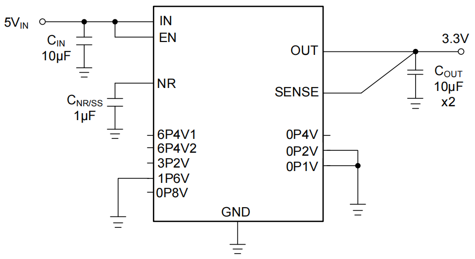 电源抑制比:88dB/75dB(100Hz/100kHz) 支持最小 10μF 输出电容稳定