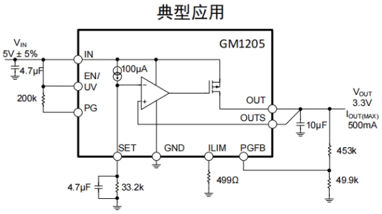 GM1205 简单易用,并拥有在高性能稳压器中所需的保护功能。包括短路保护和具迟滞的热停机功能,GM1205可完美替代ADI的LT3045。